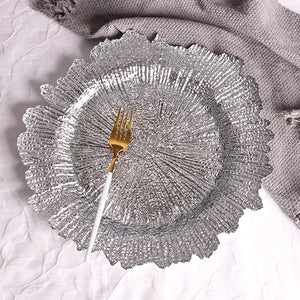 - It is made of lead-free glass to ensure that the material of the product is safe and harmless. The round coral reef glass plate is designed with a unique coral reef pattern, and each piece of coral reef pattern shows delicate texture and layering.