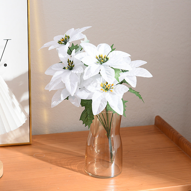 Bulk 14" Poinsettias Bush Flowers Assemble Artificial Christmas Flowers DIY Wholesale