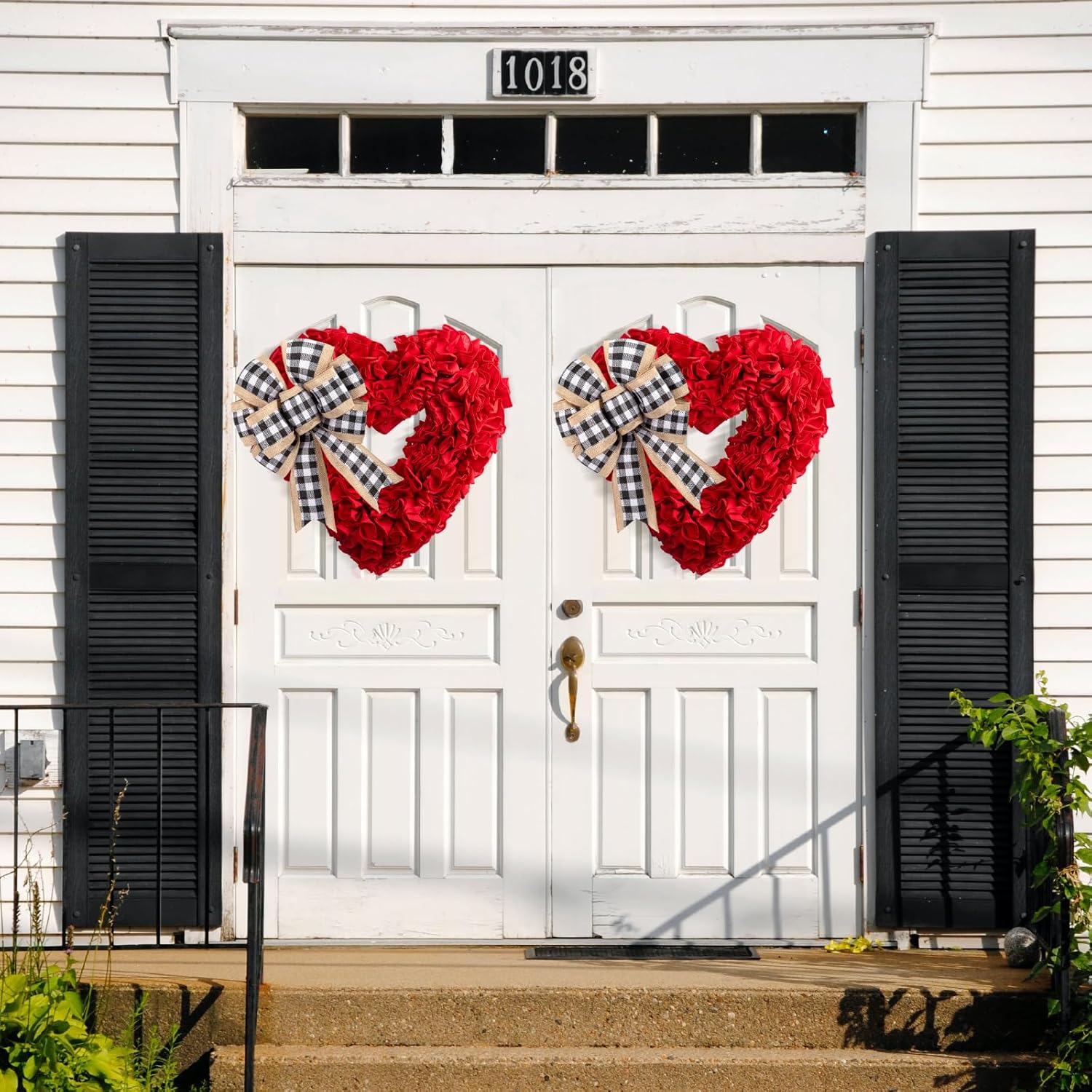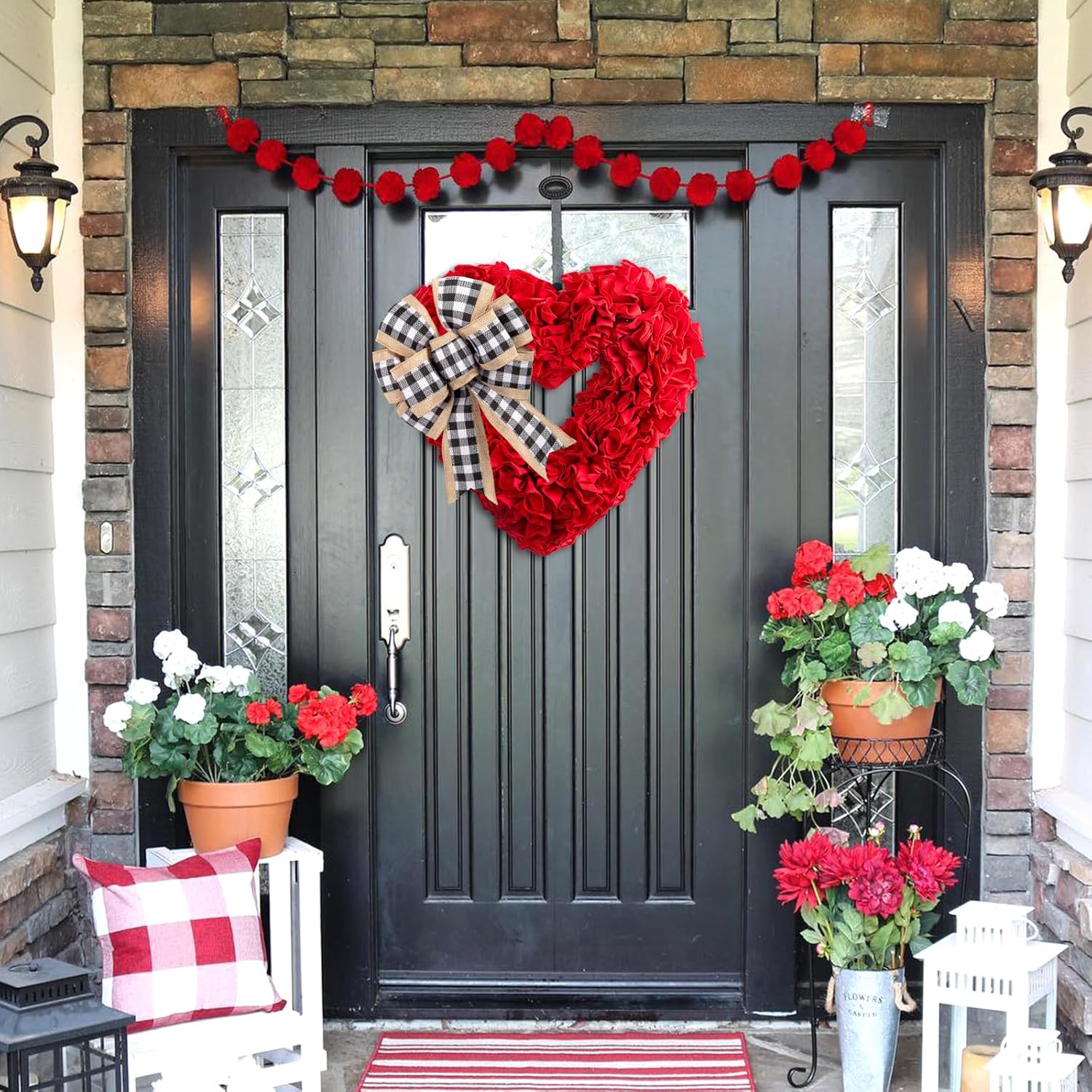 • Elegant buffalo plaid bows, rose petals shaped of wreath band, keeping house full of love when you're getting ready for the Valentines Day