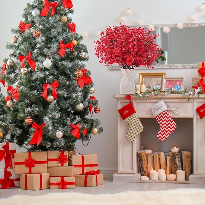 Bulk 15Pcs Red Babys Breath Artificial Flowers Real Touch Faux Gypsophila Bouquet Silk Flowers Wholesale