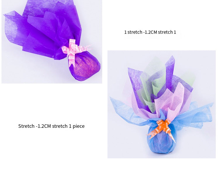 - The high -quality silk cotton paper is selected. The texture is soft and comfortable to the touch, showing a gorgeous luster. Silk cotton paper has excellent tear resistance. The lightness and softness of the dual characteristic fibers of paper and cloth form a hazy semi -transparent effect. It is a widely used packaging in the floral circle.