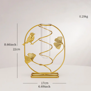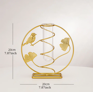 - Made of strong and durable natural metal, the glass container is made of high borosilicate heat-resistant glass. Glass vase with iron stand is easy to clean and durable. The small, space-saving size makes it the perfect addition to a desktop or small living space.