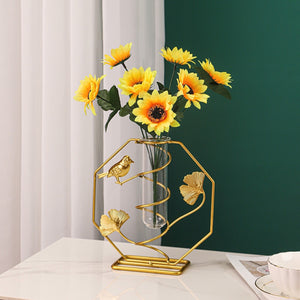 Bulk 1pc Elegant Ginkgo Leaf Metal Vase with Geometry Stand for Home Decor Flower Arrangements Wholesale