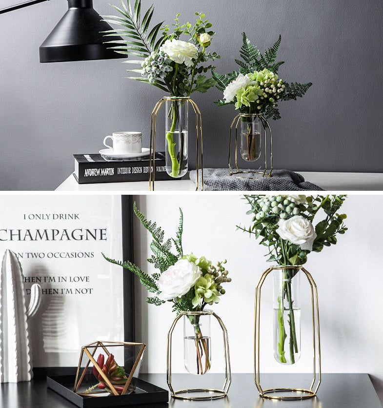 • Beautiful and environmentally friendly, made of iron and glass, durable, high-quality clear glass tube glass container with smooth and round surface. Gold geometric design metal stand, electroplating process, good color retention. Just put the glass tube into the metal stand through the top opening, and then pour water. Easy to set up or remove terrarium.
