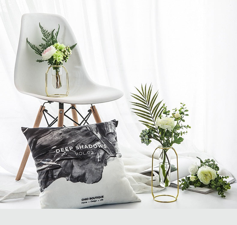 Bulk 1pc Gold Glass Vase With Metal Frame Geometric Hydroponics Vase for Centerpieces Wedding Office Living Room Decor Wholesale