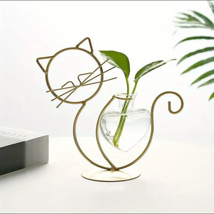 Bulk 1pc Heart-shape Glass Vase with Cat Shape Metal Stand for Home Garden Wedding Decoration Home Decor Wholesale