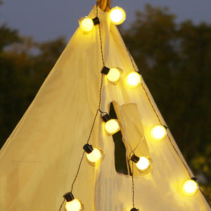 - Description: Illuminate your outdoor events with our high-quality waterproof camping string lights. These battery-powered globe bulbs are perfect for creating a warm and inviting atmosphere in any setting, from weddings and parties to camping trips and patio decor. Designed to withstand outdoor conditions, these lights bring a touch of elegance and functionality to your gatherings.
