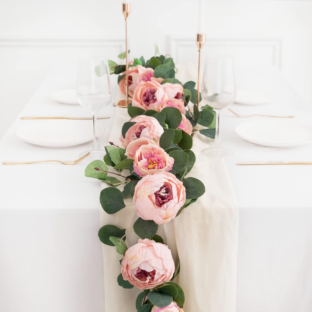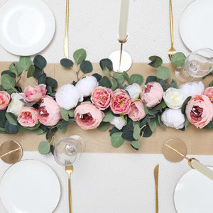 Bulk 2 Pack Artificial Peony Flower Garlands Eucalyptus Garlands with Flowers for Wedding Table Home Decor Wholesale
