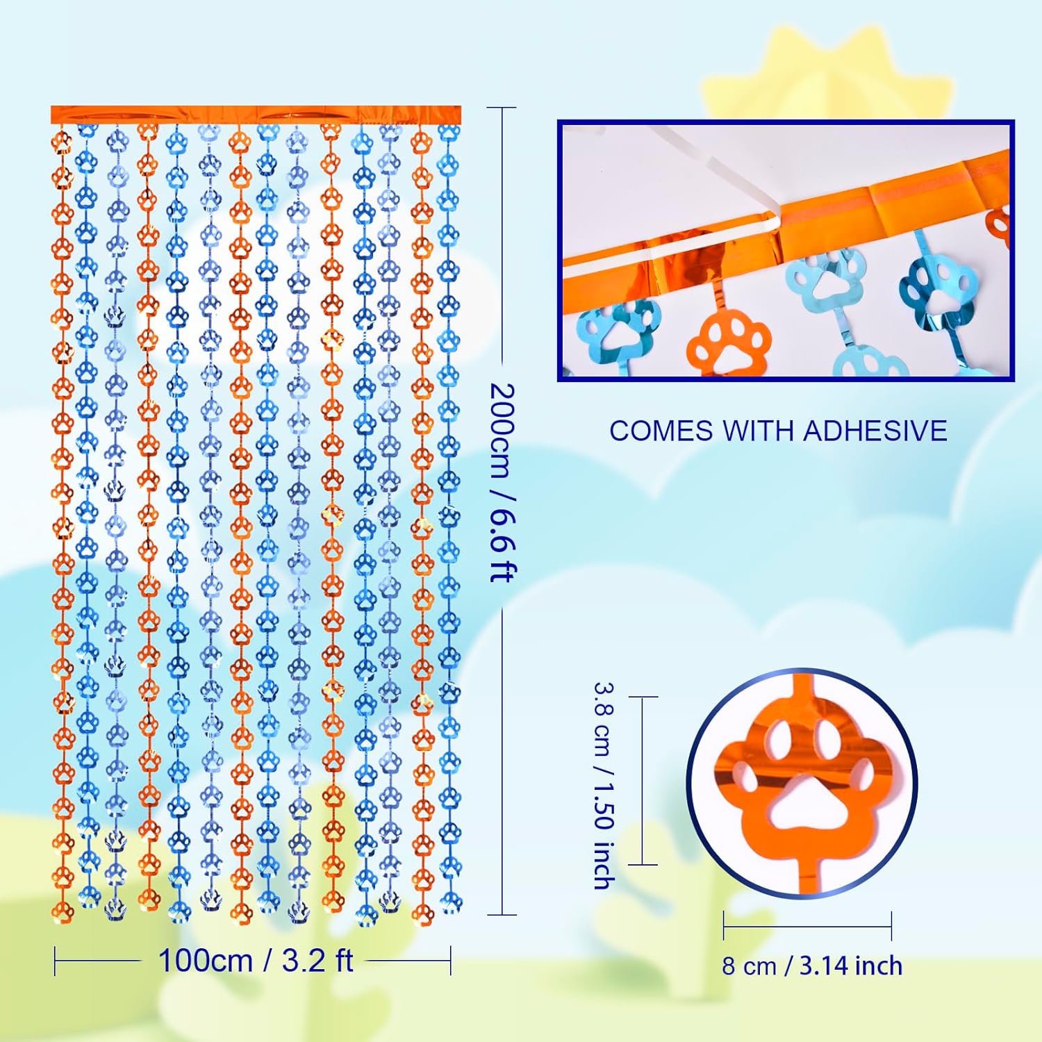 • Elevate your Blue Dog themed party with our Metallic Foil Fringe Curtain Backdrop featuring a charming Dog Paw Design. Each curtain measures a generous 3.3 x 6.6 feet, providing the perfect backdrop for your event.