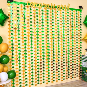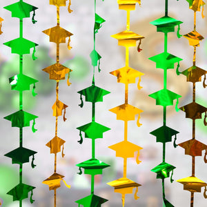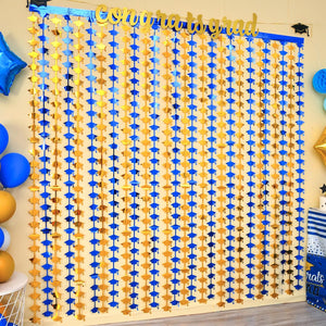 - Elevate your graduation celebration with our Metallic Foil Fringe Curtain Ribbon Backdrop! Crafted from lightweight and durable metallic wire material, these curtains are both resilient and long-lasting, providing the perfect decorative touch for your event.