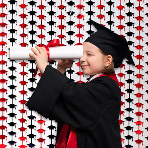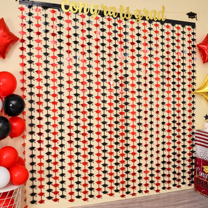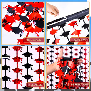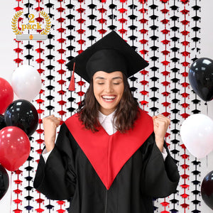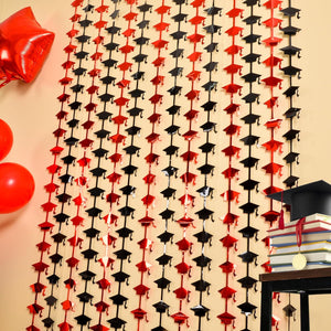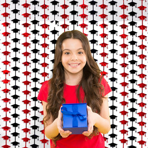 - These versatile red and black foil fringe curtain backdrops are suitable for graduation photo backgrounds of all ages, from kindergarten to college and beyond. Use them at home, in classrooms, schools, bars, or any other venue of your choice.