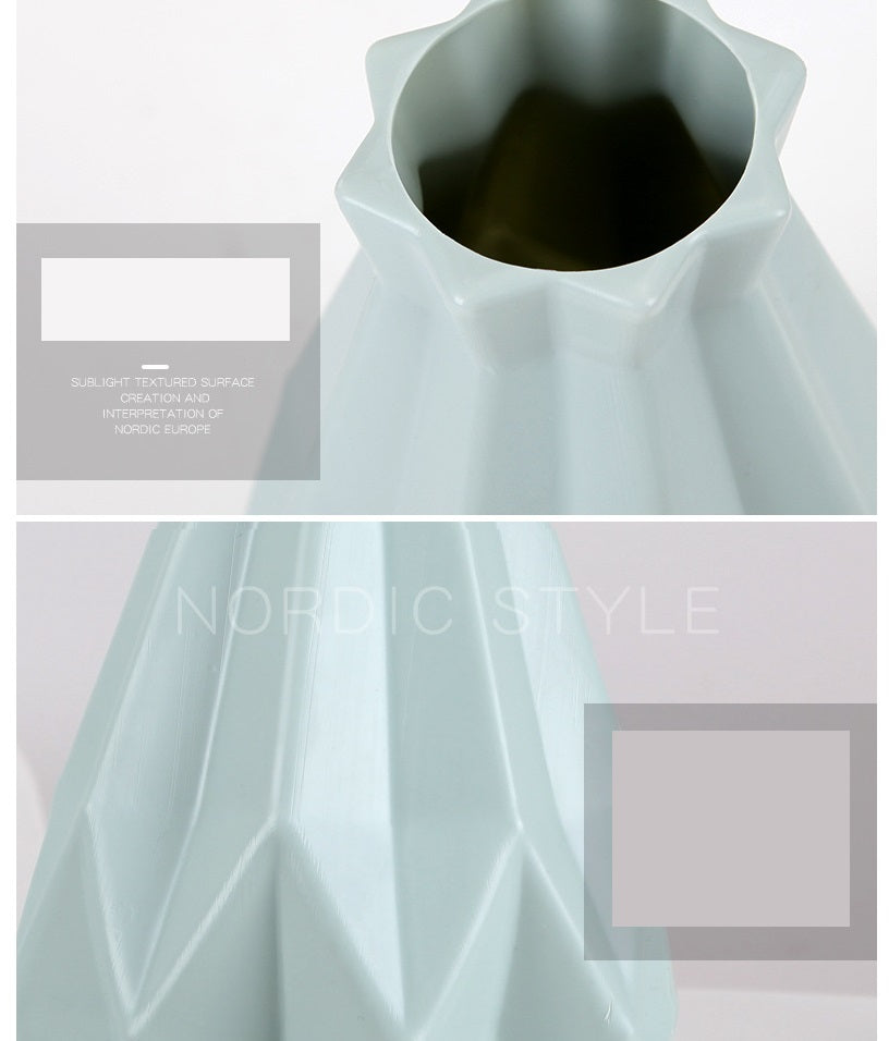 • Made of PE material, lightweight and durable, easy to carry without worrying about being broken. It has a geometric surface, is designed with lines, and feels great in the hand. Vase is not only a great decoration for home and office, but also an ideal gift for friends and family.