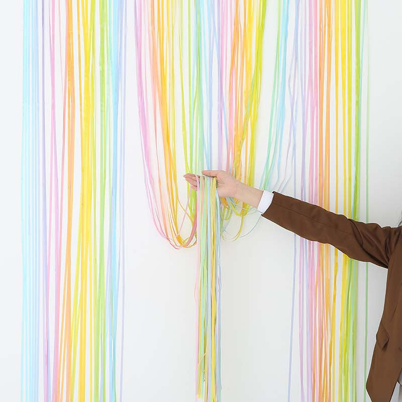 PACKAGE: 2 pack of macaron color fringe curtains, the size of each curtain is 3.28 ft x 6.56 ft, enough length for hanging on a door or covering a wall fully, suitable for any parties.