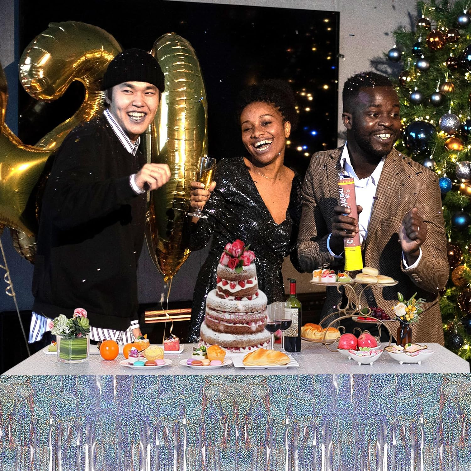 • Sparkling Laser Table Skirt: The laser plastic table skirt features a dazzling holographic design that presents different color effects under different lighting conditions, all very beautiful and shiny, making it a highlight of your party and enhancing the festive atmosphere.