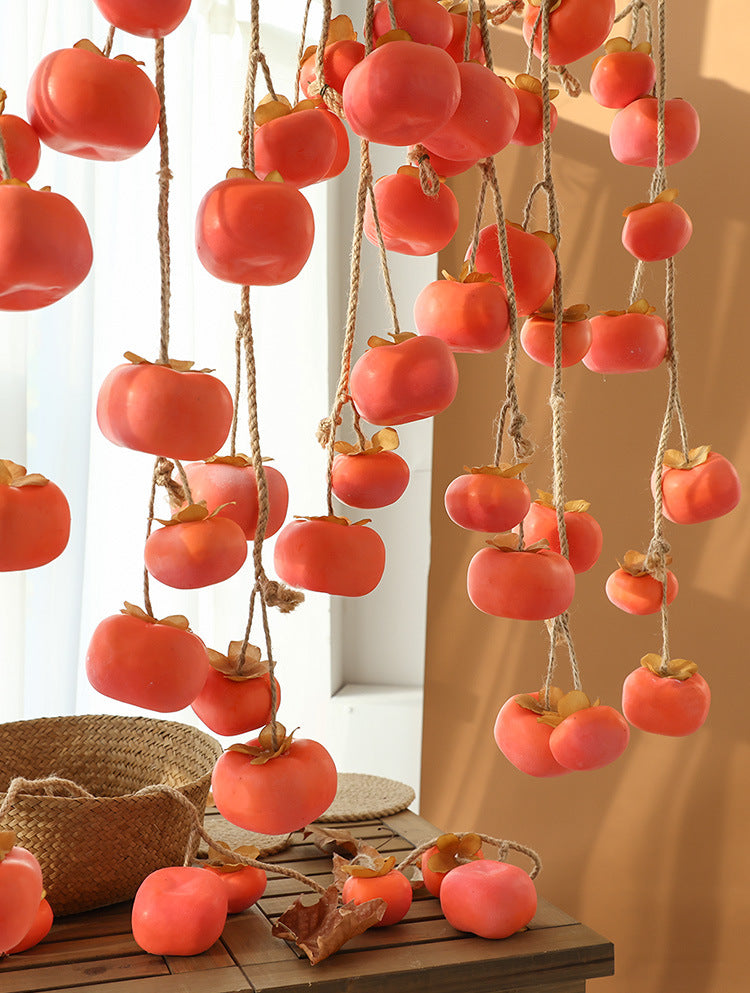 Bulk 2 Pcs Persimmon Garlands Real Touch Fade Resistance for Indoor Outdoor Home Decor Thanksgiving Photo Studio Backdrops Wholesale