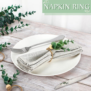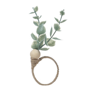 - Elevate your table decor with our exquisite Rustic Eucalyptus Napkin Rings, perfect for adding a touch of natural charm to any occasion. Crafted from a combination of wood, plastic, jute rope, and gold accents, these napkin rings effortlessly blend rustic aesthetics with elegant sophistication, making them versatile for a variety of events.
