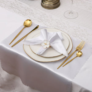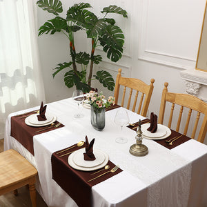 - Enhance the elegance of your dining experience with our exquisite Satin Hollow Lace Napkins. Crafted to perfection, these napkins are designed to elevate any occasion, whether it's a lavish wedding reception, a sophisticated restaurant dinner, or a lively party celebration. Available in a variety of classic colors, these napkins can effortlessly complement any décor theme or color scheme. Their durable construction ensures long-lasting performance, making them suitable for repeated use and easy maintenance.