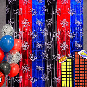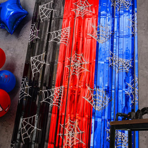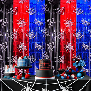 Bulk 2 Pcs Spider Web Party Decor 3.3x6.6ft Tinsel Foil Fringe Curtains Red Black Blue Photo Booth Backdrop for Boys' Birthday Wholesale