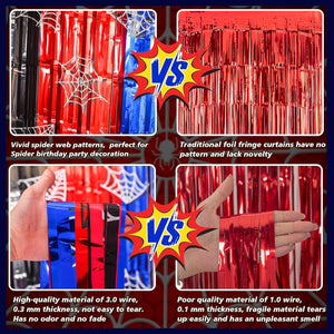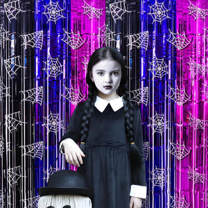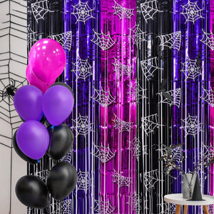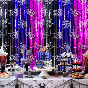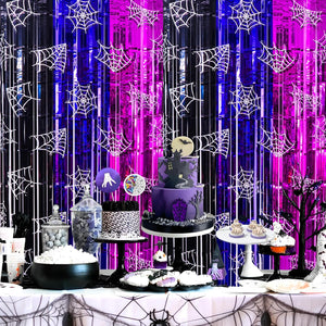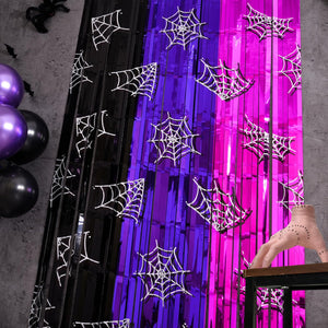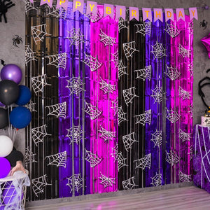 - Packaging: Each package includes 2 packs of our Spider-themed foil fringe curtains featuring vivid spider web patterns, providing ample coverage for your party backdrop needs.