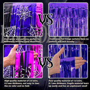 - Standout Features: Compared to traditional aluminum foil fringe curtains, our Spider Web-themed curtains stand out with their lively spider web element patterns, adding a playful touch to your party decor.