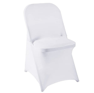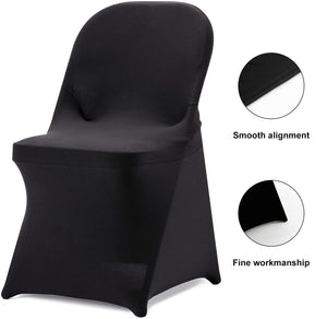 - Folding chair covers are made of polyester, which is stretchable, wrinkle-resistant and durable. Our spandex chair covers protect your chairs from stains, dirt, and pet damage, making them ideal for homes with kids, dogs, and cats. There are 4 elastic foot pockets that are sturdy and durable, ensuring every part of the chair is covered.