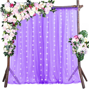 Bulk 2 PCS Tulle Sheer Backdrop Curtain Drapes with Led Light for Wedding Arch Baby Shower Birthday Party Decoration Wholesale