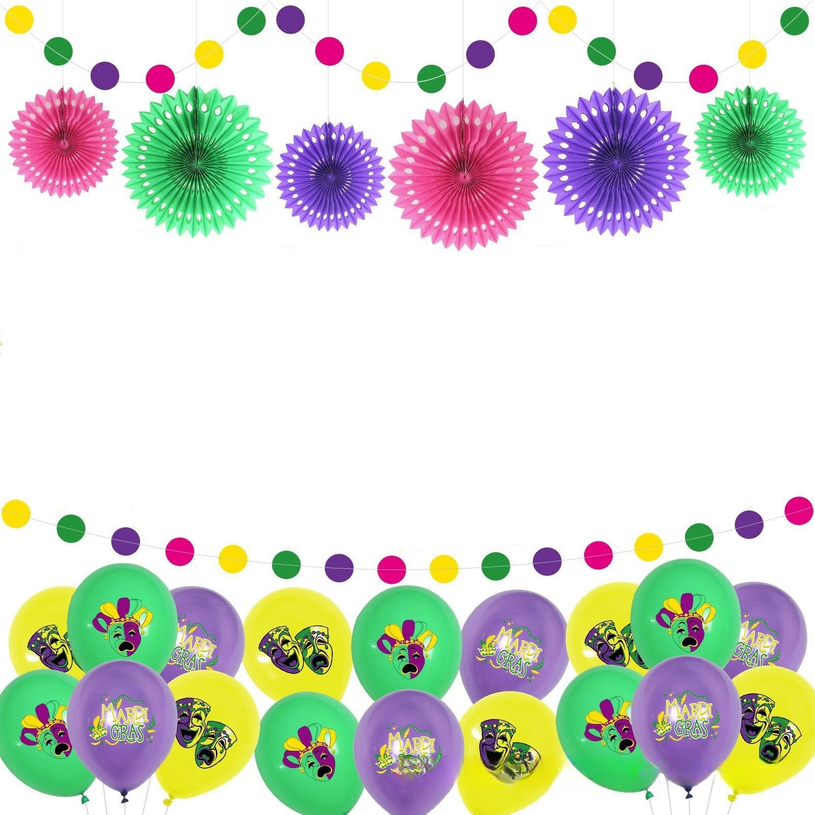 Bulk 2 Set Mardi Gras Party Supplies Props Paper Garland Latex Balloons Paper Fan Tissue Paper Tassel Garland Holiday Decor Wholesale