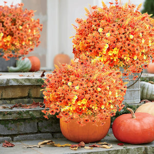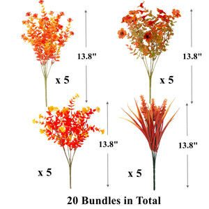 Bulk 20 Bundles Artificial Fall Flowers for Outdoors UV Resistant Faux Mums Fall Decorations Wholesale