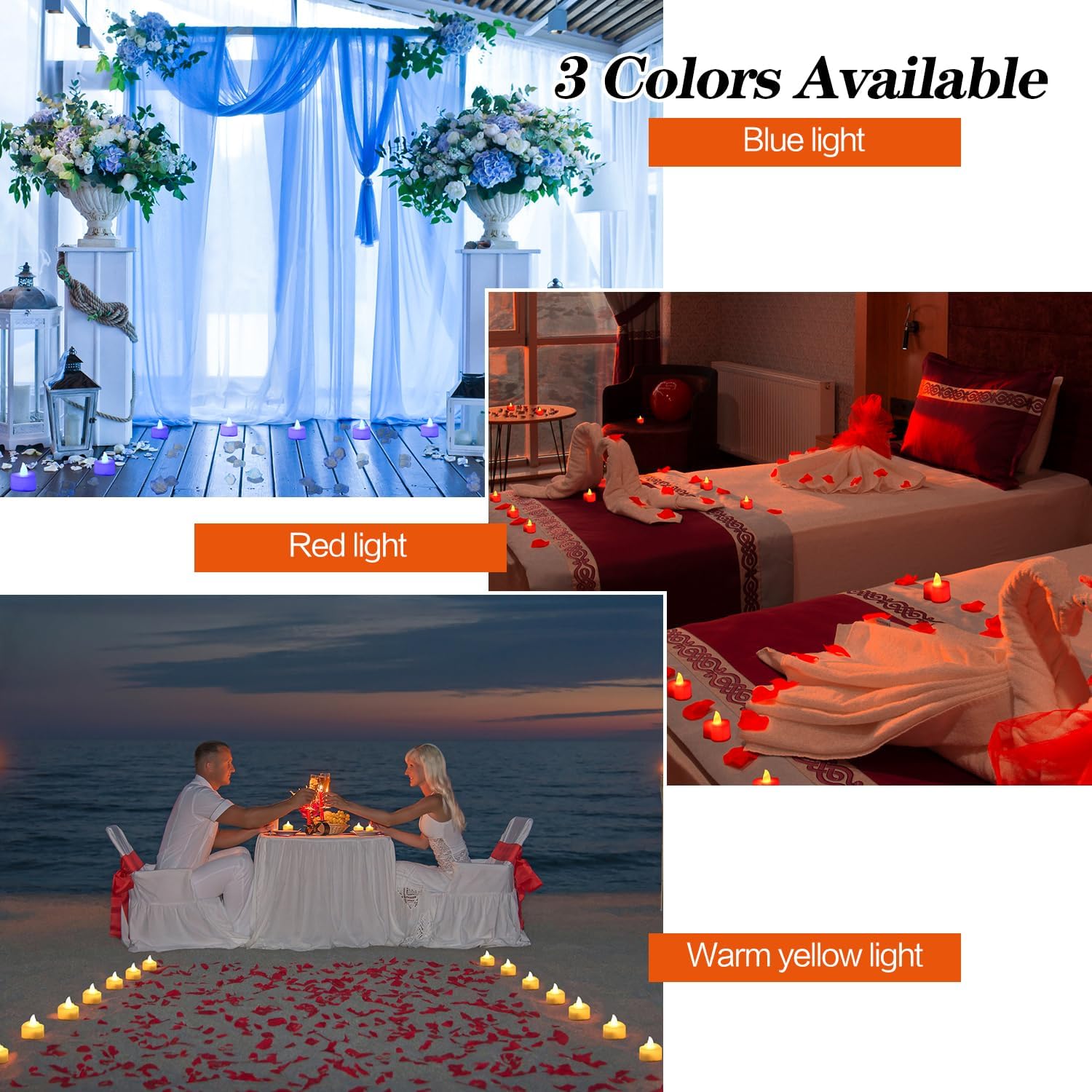 - Create Magical Evenings with our LED Tea Lights and Artificial Rose Petals - Perfect for Valentine's Day and Weddings! These enchanting decorations feature energy-efficient LED lights powered by batteries, ensuring a safe and hassle-free experience. Crafted from durable plastic, they exude elegance while adding a romantic ambiance to your special occasions.