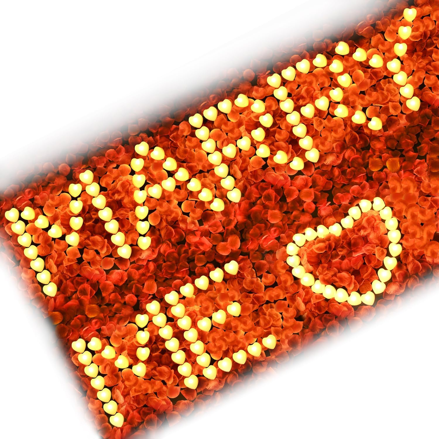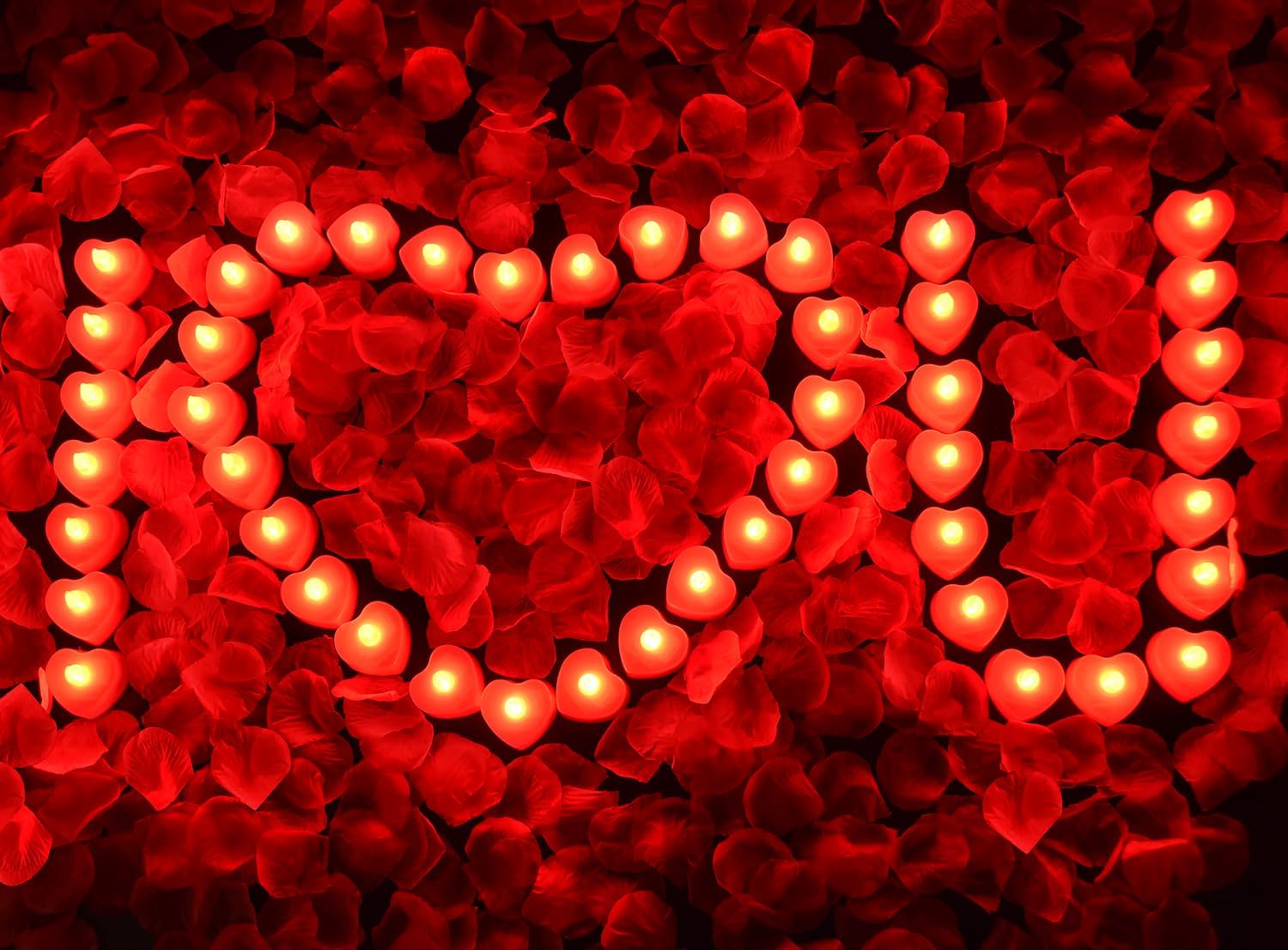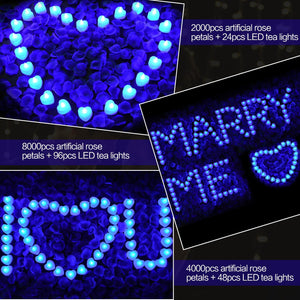 - Packing Content: Includes 2000 pieces of red artificial rose petals and 24 pieces of heart-shaped warm yellow flameless tea lights. It can be used to create a romantic atmosphere for birthdays, Christmas, etc. (Batteries not included)