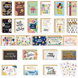 24-piece set of birthday cards, complete with 24 envelopes and stickers. Perfect for any age or gender, these cards add a touch of elegance to any birthday celebration.