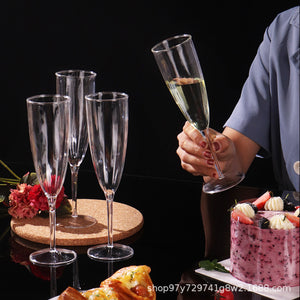 - Description: Elevate your event with our Bulk Disposable Plastic Champagne Flutes, Wine Glasses, and Goblets. Perfect for weddings, bars, picnics, and outdoor parties, these clear drink ware pieces offer convenience and elegance for any occasion.