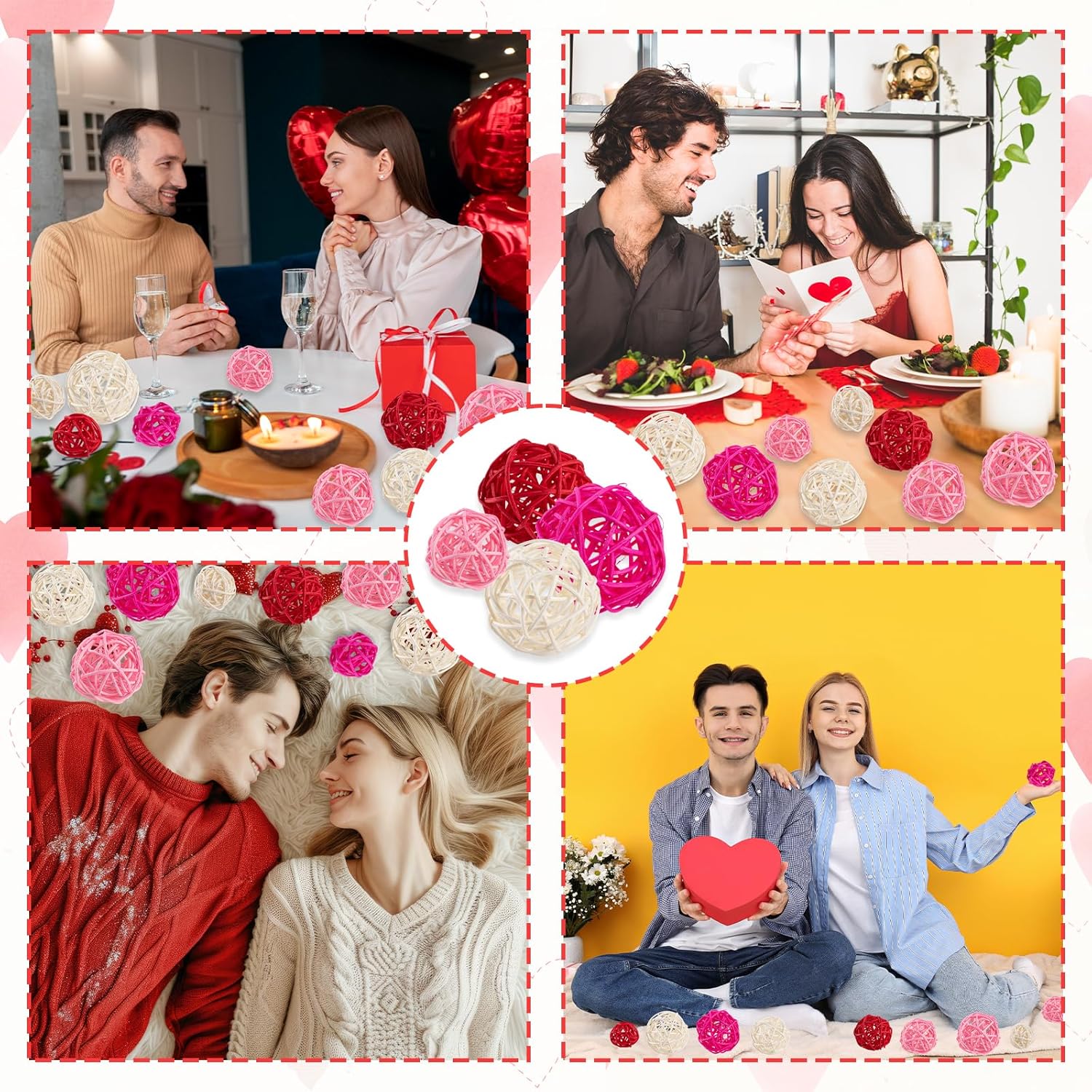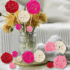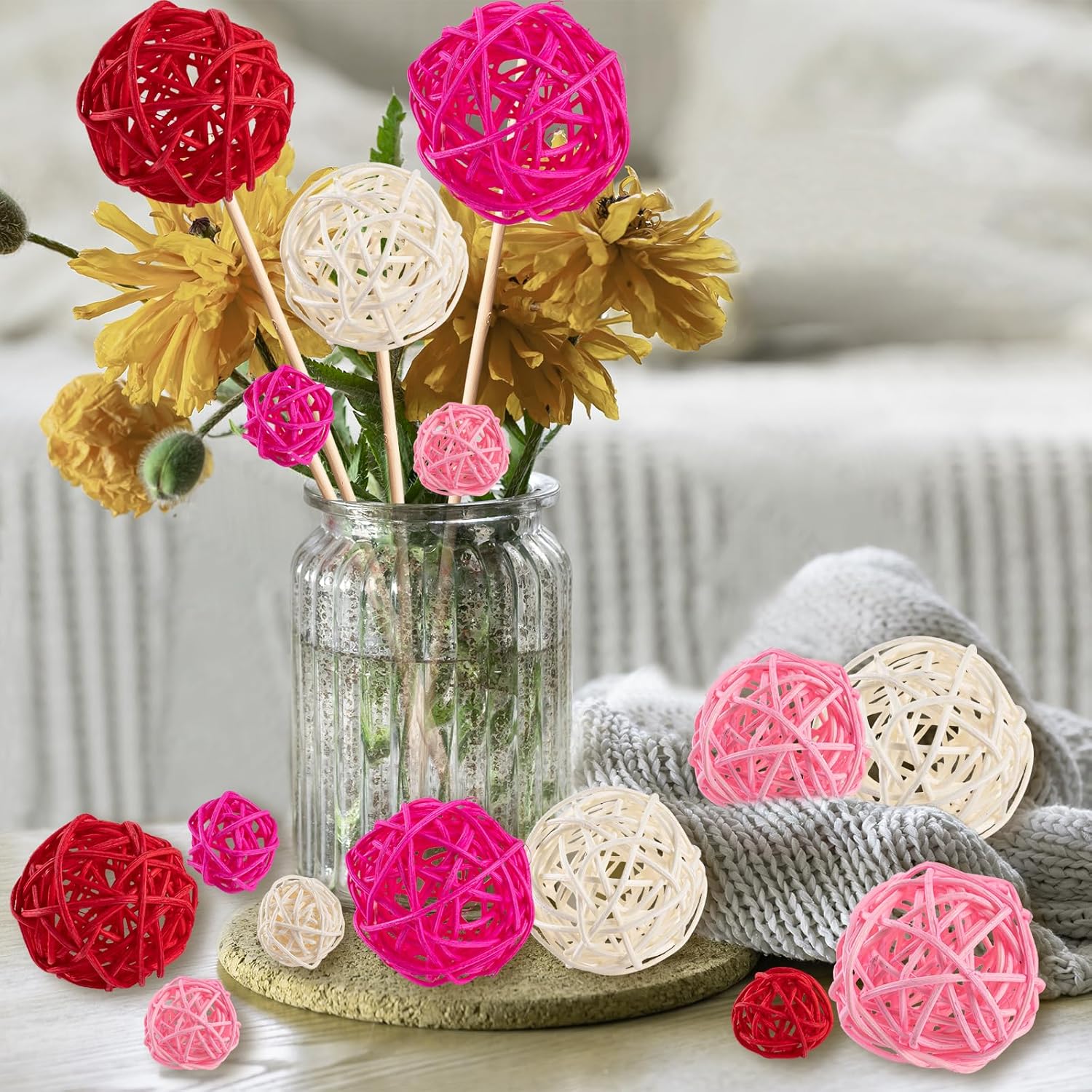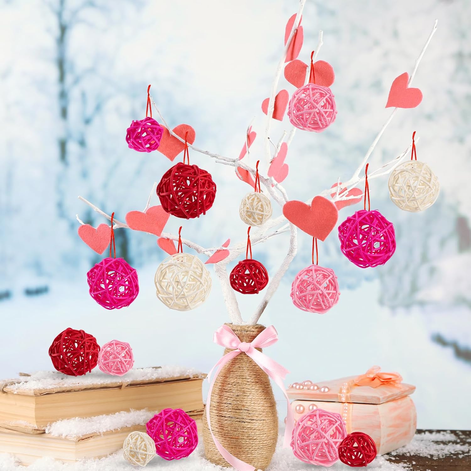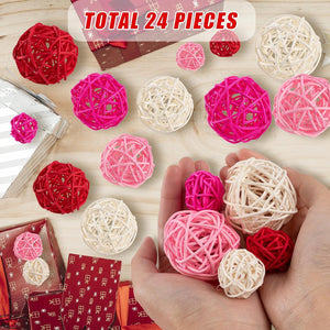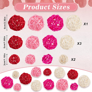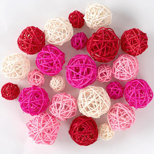 Bulk 24Pcs Valentine's Day Rattan Balls Pink Red Grey Wicker Orbs for Valentine's Day Wedding Home Decor Wholesale