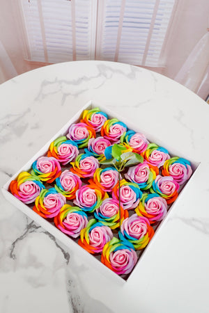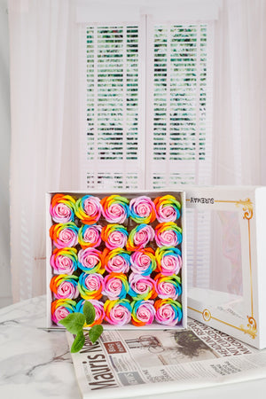 Bulk 25 Pcs 2.7" Artificial Rainbow Rose Soap Heads with Detachable Stems Wholesale
