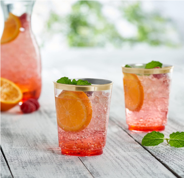Bulk 25 Pcs Clear Gold Rim Plastic Wine Glasses Banquet Party Wholesale