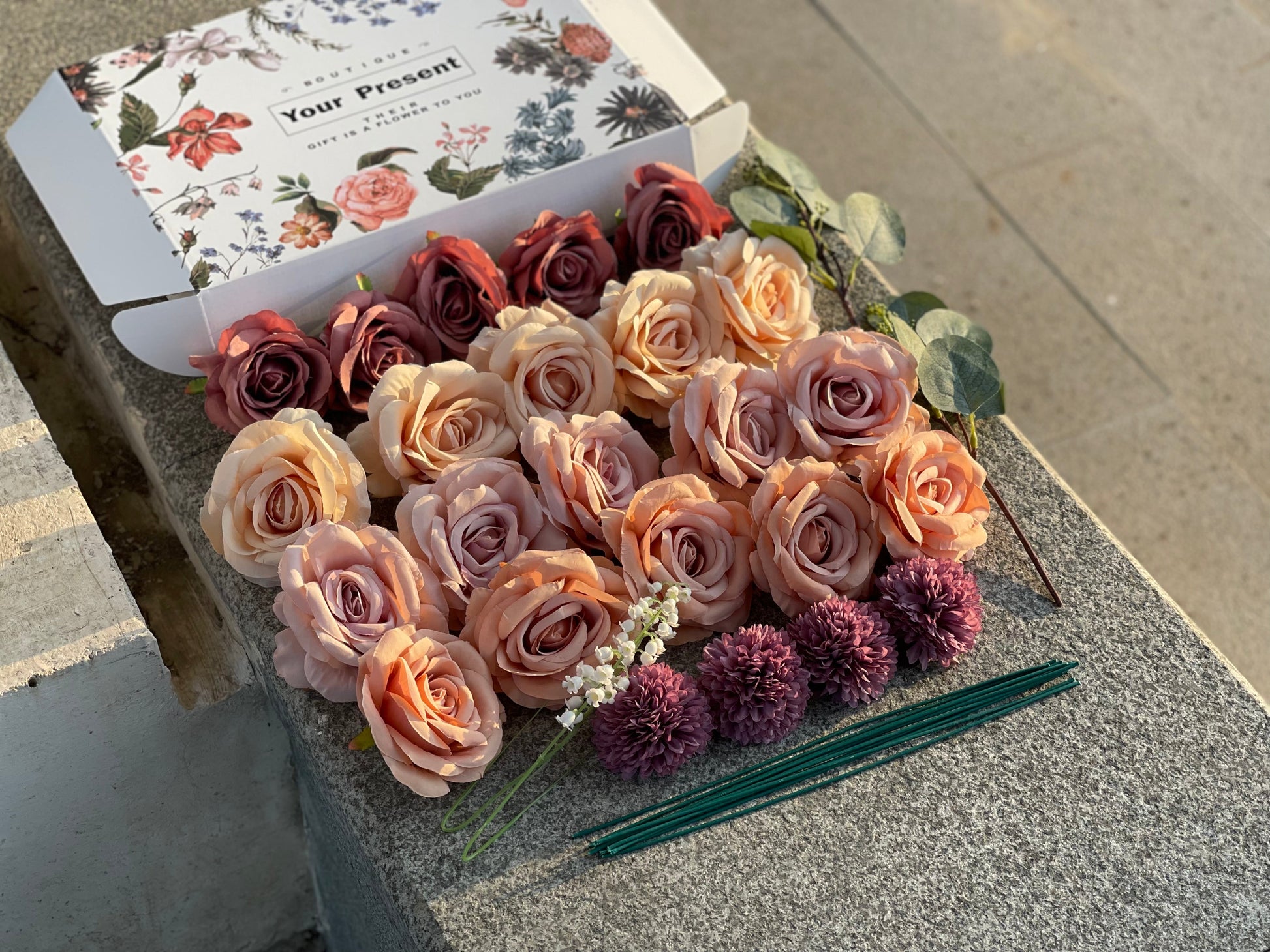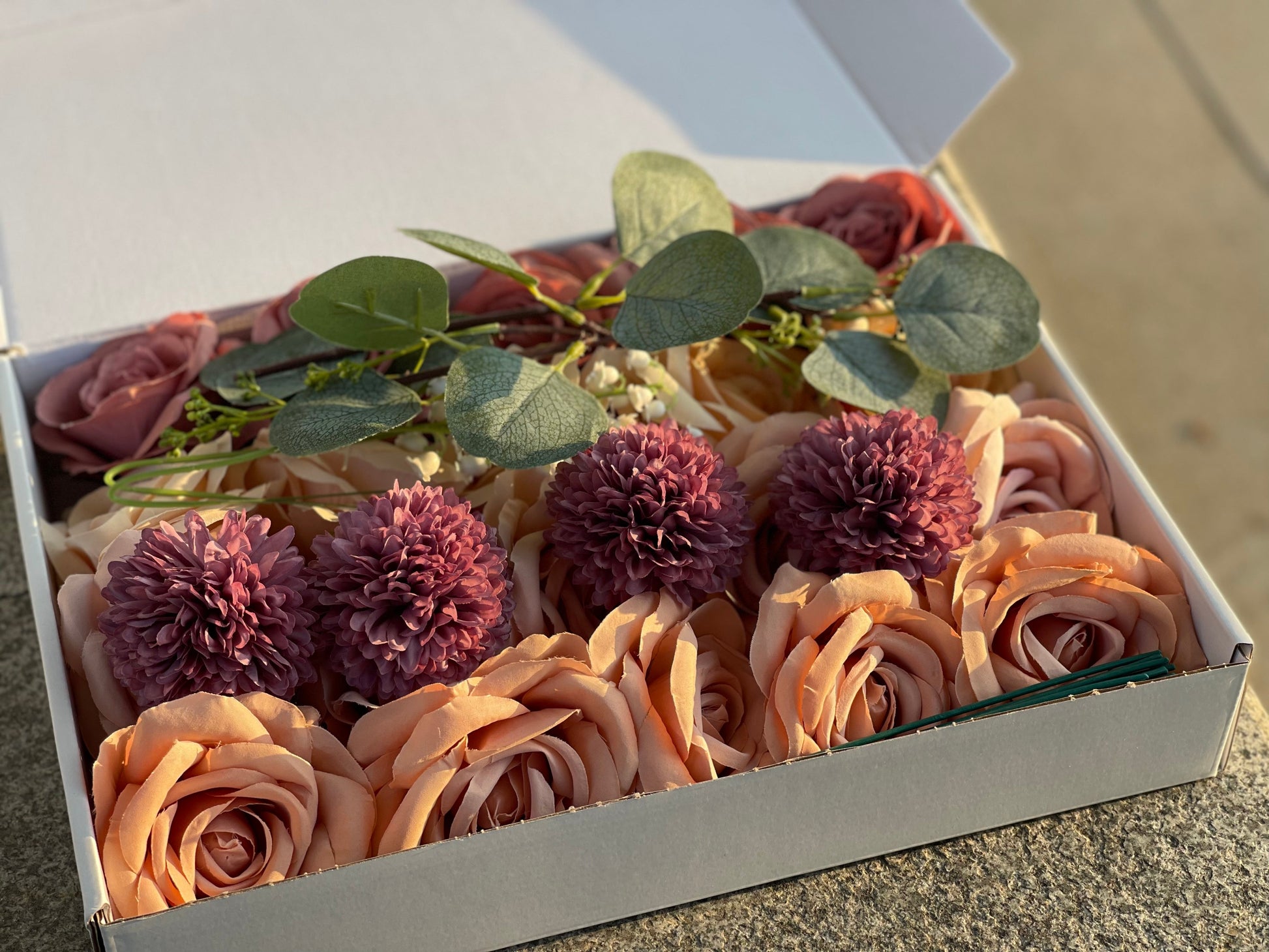 Bulk 28 Pcs Dusty Rose Ombre Artificial Flower Box Set for Crafts Wholesale