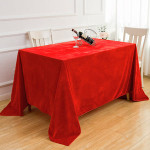 - Made from premium velvet fabric, this tablecloth offers a soft, plush texture with a luxurious sheen. The fine craftsmanship gives the edges a satin-like finish, ensuring a smooth, wrinkle-resistant appearance that is easy to maintain.