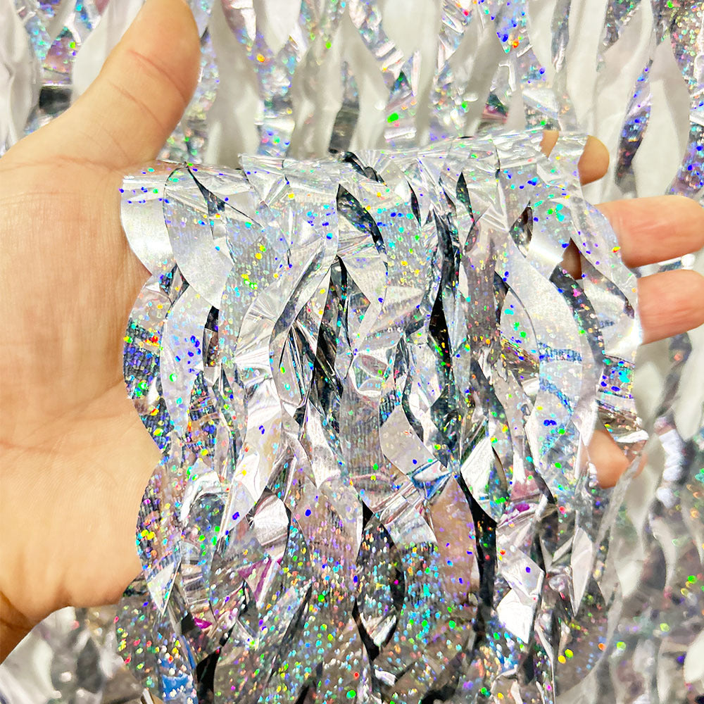 TINSEL MATERIAL: The foil curtain backdrop is made of tinsel with shiny surface, lightweight and durable Sparkle metallic Fringe Curtains.