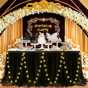 - Equipped with LED light string: The table skirt is equipped with LED decorative lights, making the party more romantic and elegant. The LED light string is clipped onto the table skirt using clips, and the packaging includes clips.