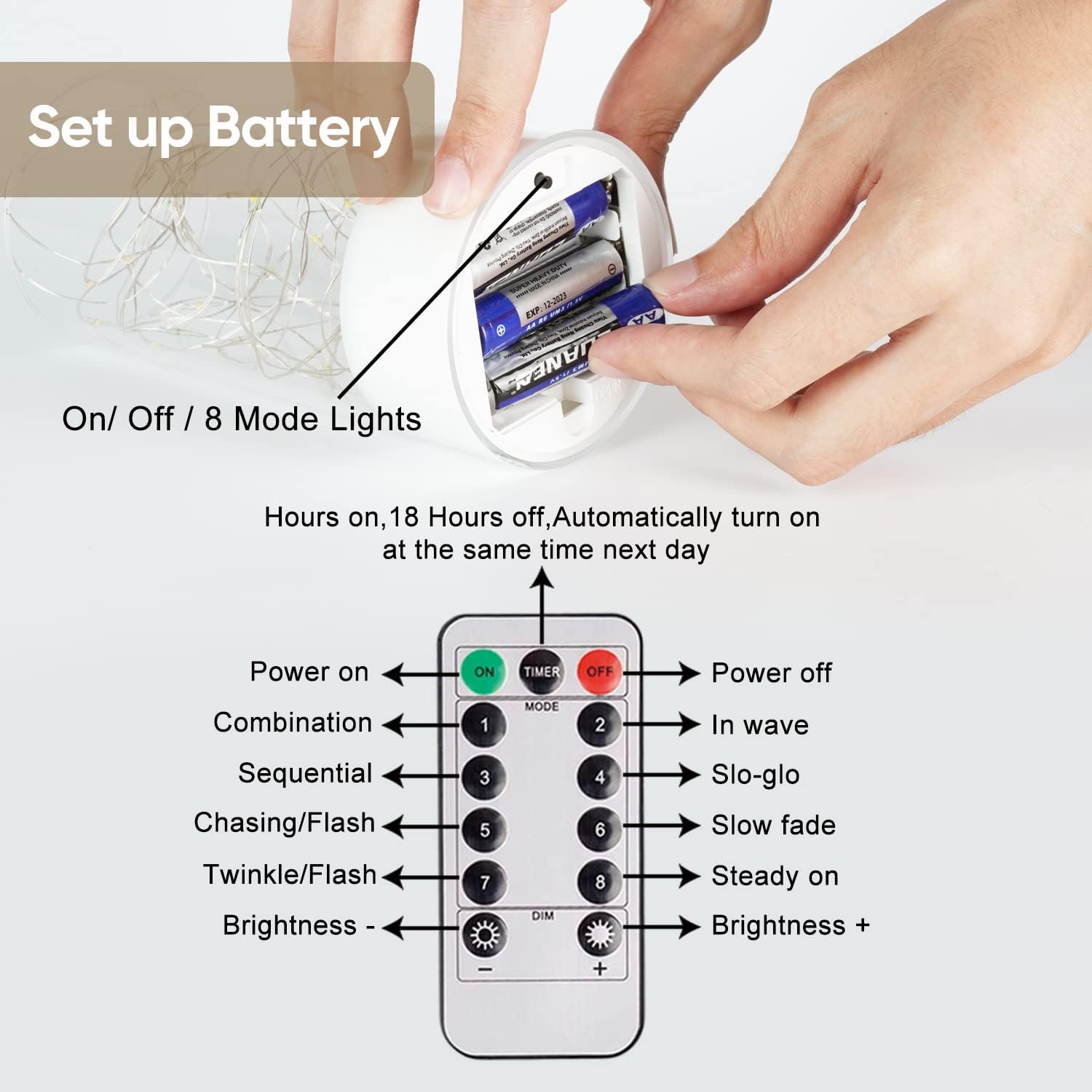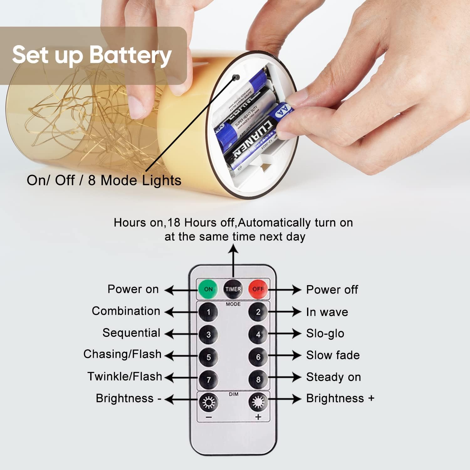 • Long Lasting by Battery: Turn on the button of Fairy lights power by 3AA batteries, (Not included) which have 500+ hours of light-time and can be replaced easily via the tab at the bottom. These electric fairy light candles can long lasting though all Halloween and Christmas on the shelf display and closets