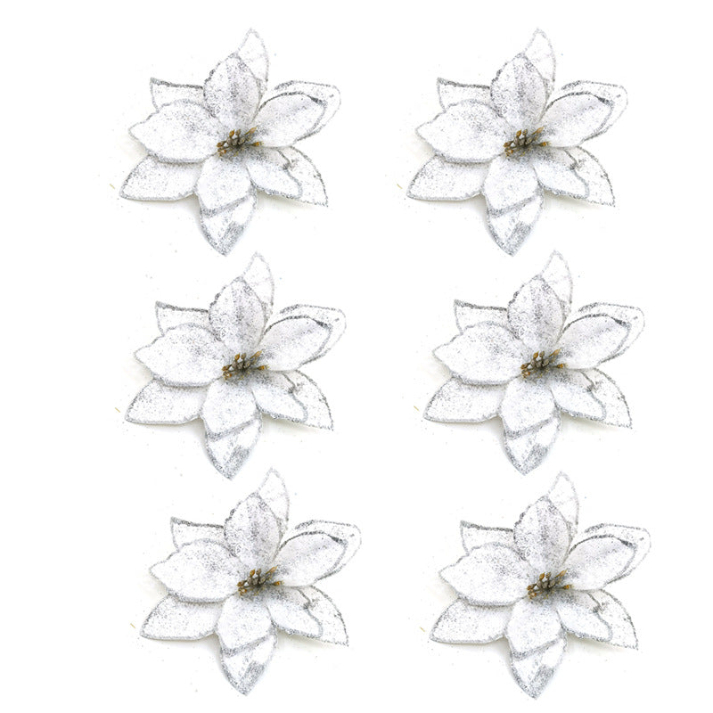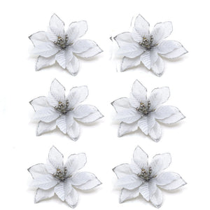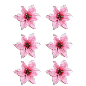 Bulk 36Pcs Artificial Christmas Poinsettia Christmas Tree Flowers Glitter Flowers Hanging Ornaments Wholesale