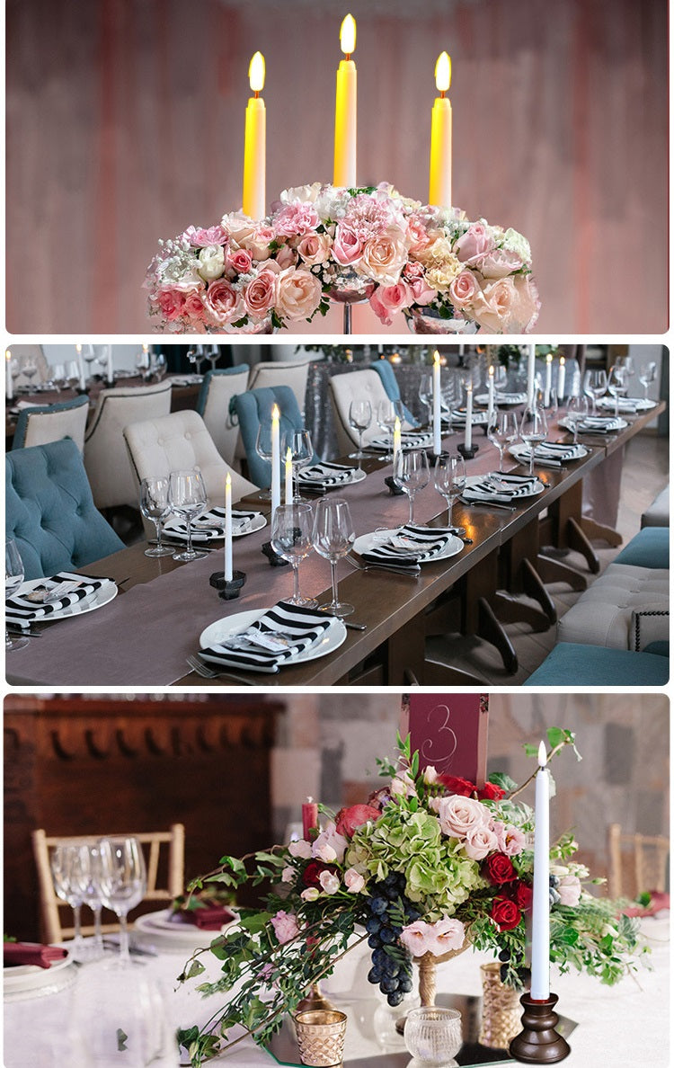 • Environmentally friendly ABS material, heat-resistant candle light, smooth surface, suitable for various types of candle holders. You can use these battery-operated candle holders indoors or outdoors. Flickering flameless taper candle that requires no real fire. There is absolutely no risk of fire or burning, and it is safe for families with pets or young children, so you can have a perfect night with peace of mind.