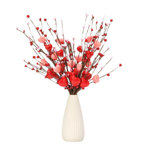 Bulk 3Pcs Red Heart Berry Stems Artificial Valentine’s Day Flowers for Home Office Table Decor Wholesale