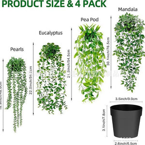 Bulk 4 Pack Artificial Hanging Plants Faux Eucalyptus Vine Mandala Vine String of Pearls Pea Pod Leaves in Pot for Indoor Outdoor Office Living Room Decor Wholesale