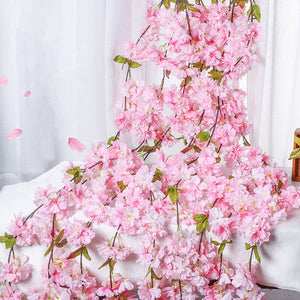 Bulk 4 Pcs Japanese Cherry Blossom Flower Vines Artificial Flowers for Outdoors Hanging Silk Flowers Garland Wholesale