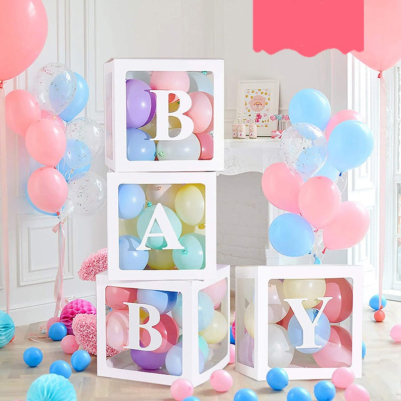 Bulk 4 Pcs Clear Balloon Boxes with Letters for Baby Shower Birthday Party Backdrop Decor Wholesale
