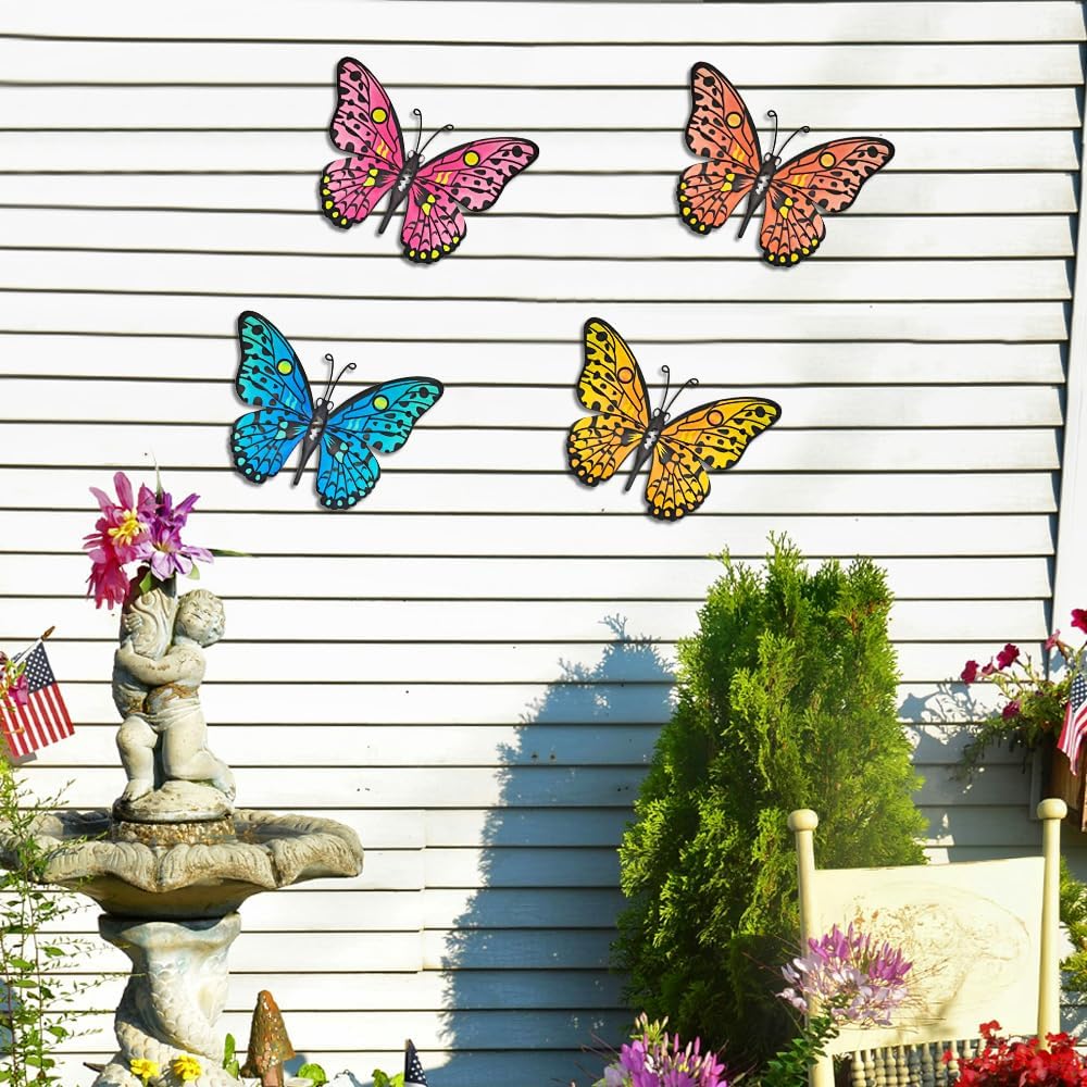 Bulk 4 Pcs Metal Butterfly Wall Decor 9.6" Outdoor Garden Patio Bedroom Art Living Room Balcony Perfect Gift for Family Friends Wholesale