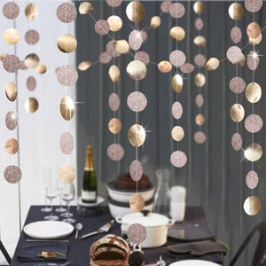 - Our Reflective Paper Circle Dots Garland Backdrop Streamers are designed to add a touch of elegance to any celebration. Easy to assemble, simply unravel the entire string and carefully hang it to avoid twisting. The garlands can be cut into different lengths to suit your decorating needs. Please handle them gently to prevent tangling due to the delicate nature of the thread. Once hung, they effortlessly elevate the ambiance of your event.
