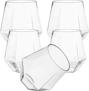 Bulk 40 Pcs 12 oz Diamond Shaped Disposable Stemless Plastic Wine Champagne & Whiskey Glasses for Party & Weddings Wholesale