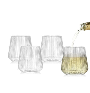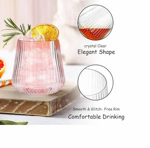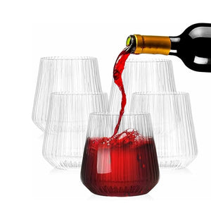 - Made from high-quality PET plastic, our stemless wine glasses are shatterproof, recyclable and BPA-free, so you can use these clear wine glasses with confidence. The drinking glasses are shaped in a unique origami style for a retro European flair, and each holds a maximum capacity of 14 ounces. Not dishwasher safe!